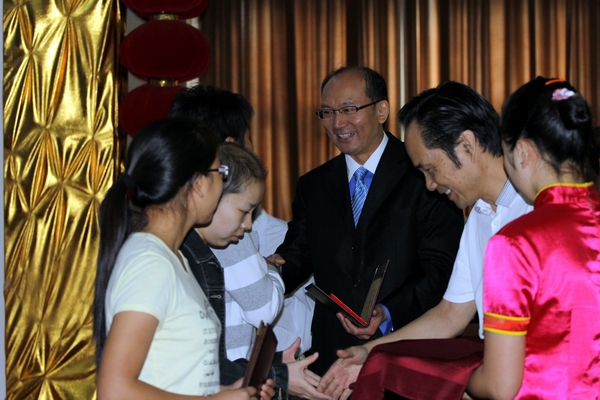 10月7日,在“医学部79级校友入校30周年庆祝大会”上举行首届“廖康雄奖学金”颁奖,廖康雄教授、医学部杨炯副部长为获奖同学颁奖。获得09年“廖康雄奖学金”的同学是:2006级临床医学八年制余小梅、2005级临床医学七年制佘乾燕、2006级临床医学五年制易新成和李艳萍。这四位同学专业课程均分超过90分,英语均以高分通过国家六级。