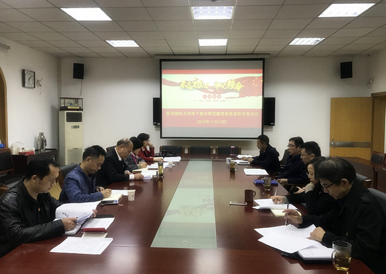 (通讯员童欧慧) 深秋时节,气温骤降,寒意渐袭。11月13日晚,医学部行政楼二楼会议室却灯火通明,“对照党章党规找差距”专题会议党员干部发言踊跃。机关与直属单位党委第二巡回指导组组长金晶到会指导。常务副部长余祥庭主持会议。
