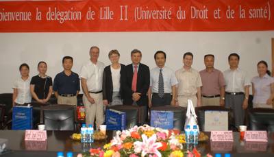 今日(6月9日)法国里尔二大SERGHERAERT校长一行到医学部访问。法国里尔二大在医学和药学领域与医学 部共同探讨合作办学事宜,并达成初步意向。 法国里尔二大SERGHERAERT校长一行与医学部副部长杨炯教授、胡先明教授...