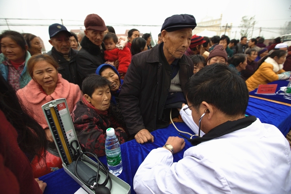 11月16日,学校党委统战部、民族团结进步促进会邀请我院中南医院、口腔医院的11名专家和信息学部、工学部的老师们30人,前往洪湖市老湾回民乡开展义诊义演活动,受到群众的热烈欢迎。图为义诊义演现场。 (蒋明 ...
