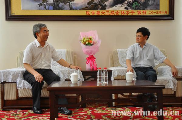 7月27日,湖北省委常委、省委秘书长梁伟年看望慰问细胞生物和免疫学家舒红兵院士。常务副校长、医学部部长冯友梅,省委办公厅、省委组织部、省教育厅相关负责人一同看望。 ▲梁伟年询问了舒红兵的工作和生活情况,衷...